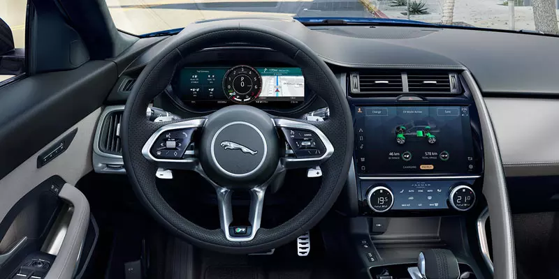 All'interno, il programma di aggiornamento gestito da ingegneri e stilisti di Coventry per l'E-Pace 2021 mette in evidenza la strumentazione digitale con un display da 12,3 ", un nuovo volante multifunzione, una nuova leva del cambio, una gamma più ampia di sistemi di illuminazione "ambientale ", utilizzo della consueta "tavolozza" di materiali pregiati per plancia, pannelli porta e sedili (a loro volta rinnovati nel design). La connettività dispone dell'esclusivo modulo di infotainment Pivi Pro della linea Jaguar Land Rover, caratterizzato da un touchscreen curvo da 11,4 "con doppio eSIM e aggiornamenti wireless.